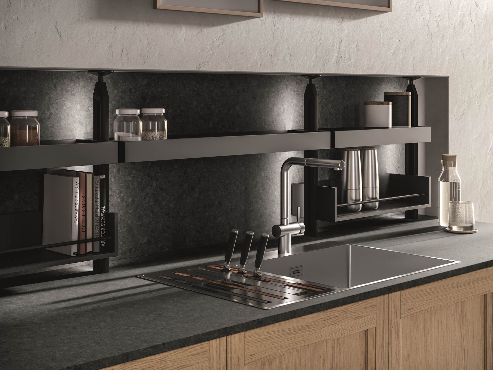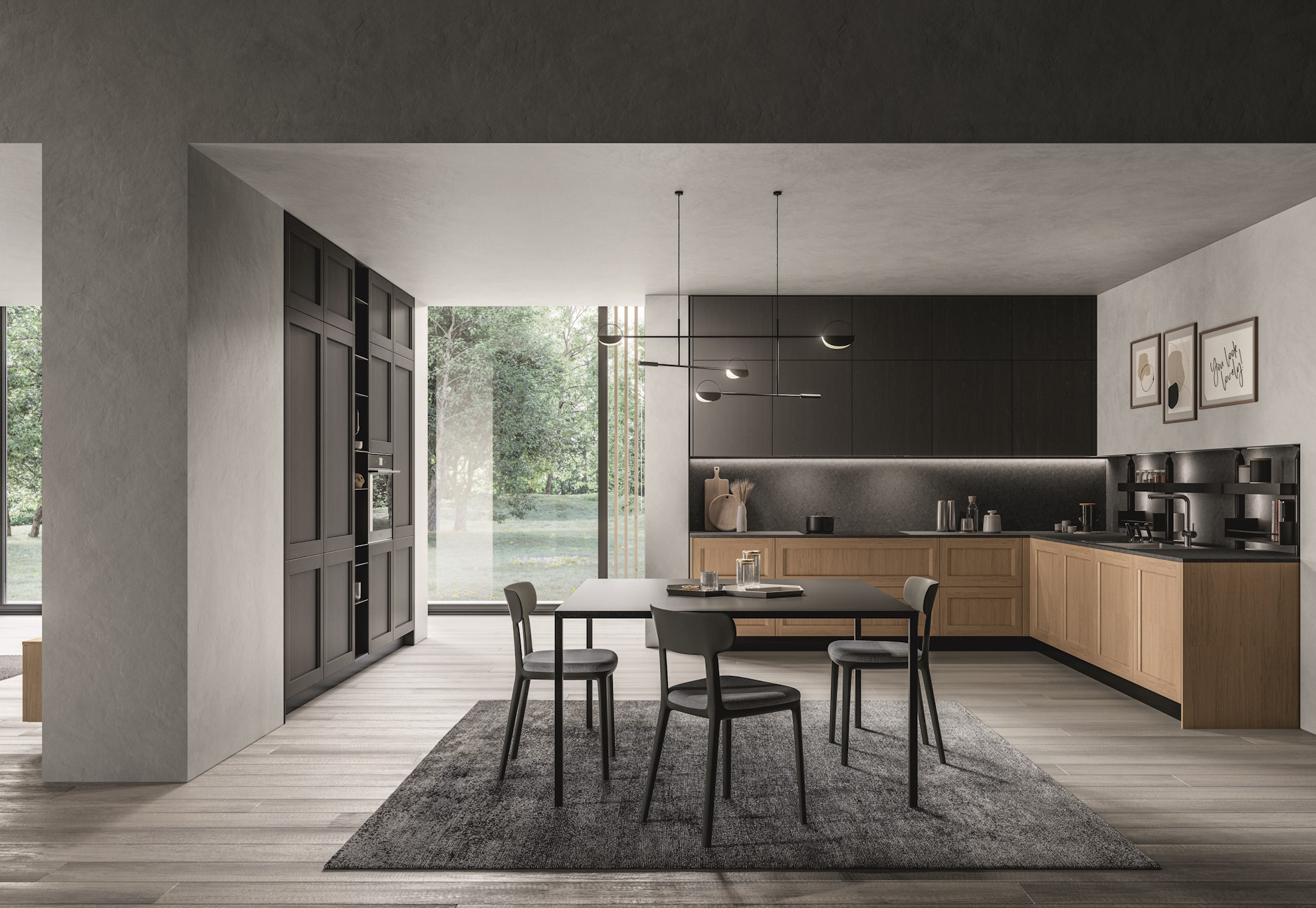 Al cuore della cucina Frida c’è l’anta a telaio in massello di frassino, un elemento distintivo che conferisce carattere e solidità a ogni composizione. La particolare presa maniglia integrata rende l’anta ancora più funzionale ed elegante, permettendoti di aprire e chiudere i cassetti con un gesto semplice e naturale.